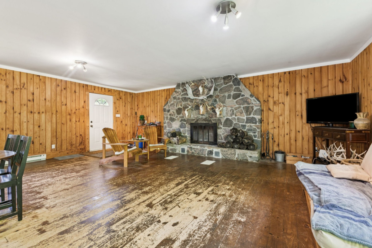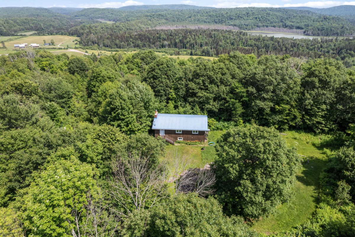Cette propriété se distingue avant tout par son terrain exceptionnel de 28,65 acres situé en hauteur, offrant une vue dégagée et un sentiment d'espace remarquable. Le site propose une topographie variée avec des plateaux naturels, des zones boisées matures et des sentiers déjà en place, parfaits pour la randonnée, l'observation de la faune ou les activités de plein air. L'environnement est calme et privé, sans voisin arrière, permettant une immersion complète en nature.La maison, conçue pour une utilisation quatre saisons, est entièrement fonctionnelle et chauffée à l'électricité, en plus d'un poêle à bois qui ajoute confort et ambiance. L'espace principal à aire ouverte est lumineux et centré autour d'un impressionnant foyer en pierre. La superficie habitable est d'environ 960 pieds carrés par niveau, avec un sous-sol offrant un excellent potentiel d'aménagement selon les besoins. Un nouveau chauffe-eau a été installé en 2025.