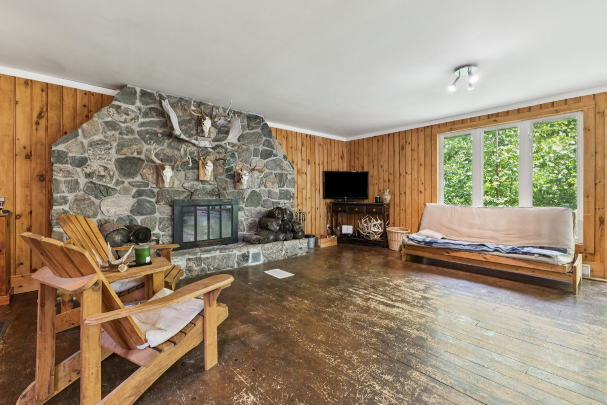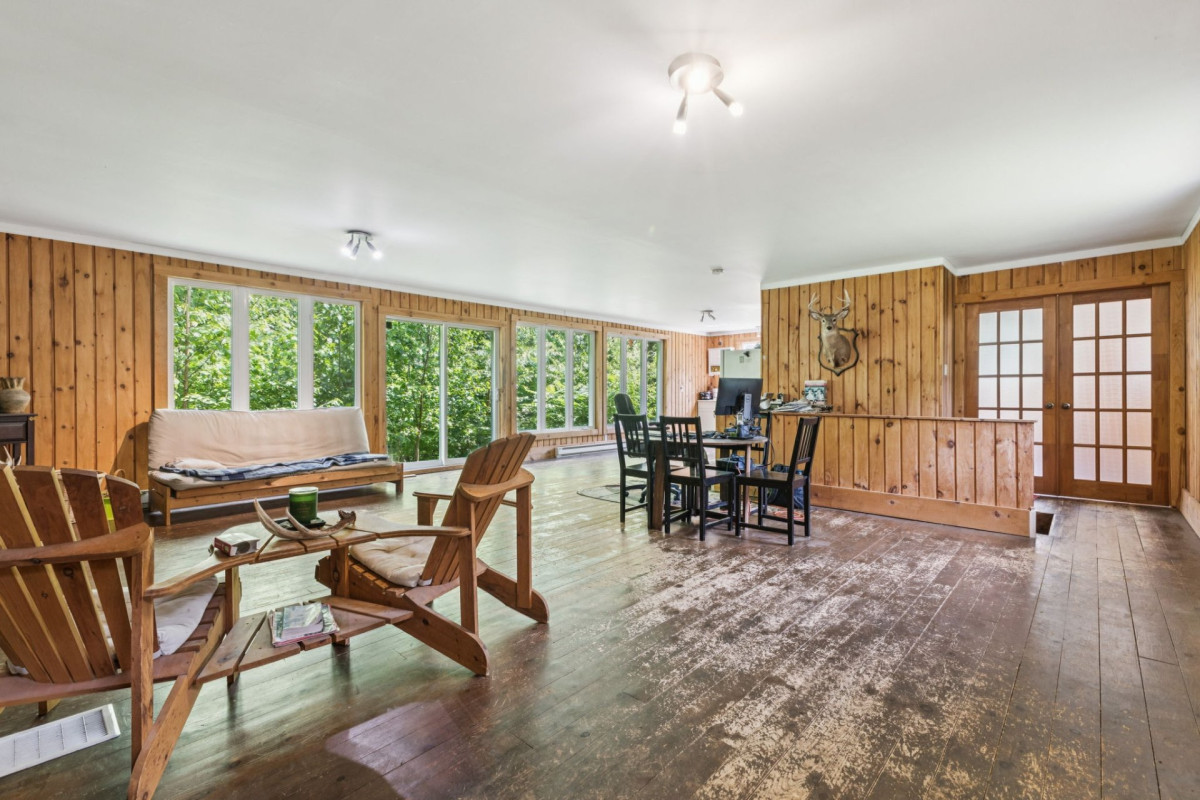 Un véritable refuge au sommet d'une montagne, niché sur 28,65 acres de nature enchanteur. Entourée de forêt mature, d'une faune abondante et offrant des vues panoramiques, cette propriété procure une tranquillité et un privé absolue sans voisin à l'horizon. La maison, habitable à l'année, propose un espace lumineux à aire ouverte avec un magnifique foyer en pierre, idéal pour se détendre après une journée en plein air. Profitez de sentiers privés et d'un environnement paisible en toute saison. Une occasion rare de vivre en pleine nature, à seulement 1h15 heure d'Ottawa-Gatineau. Cette propriété rare allie isolement recherché et accessibilité.